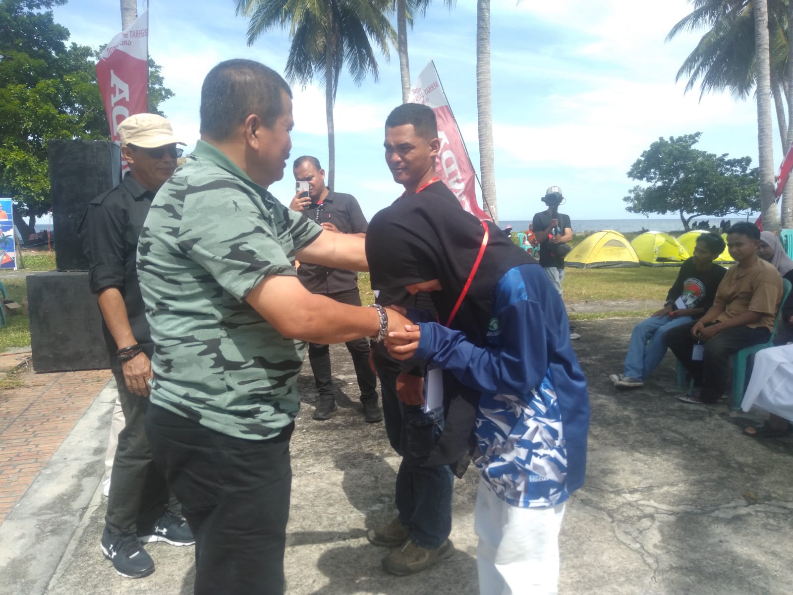 Pada kesempatan tersebut, Wabup secara simbolis menyerahkan ID card peserta kepada tiga perwakilan organisasi pemuda: Agung (Karang Taruna Salando), Mavaro Petapa, dan Wulan (Risma Kreatif Nurul Gufran Toboli Barat).