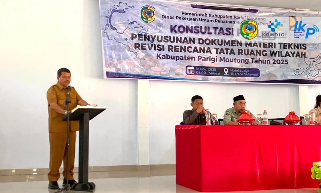 PARIGI MOUTONG, Seperdetik – Pemerintah Kabupaten Parigi Moutong melalui Dinas Pekerjaan Umum, Penataan Ruang, dan Pertanahan (PUPRP) menggelar Konsultasi Publik I penyusunan dokumen Rencana Tata Ruang Wilayah (RTRW) di Aula Hotel Ludya, Selasa (18/11/2025).
